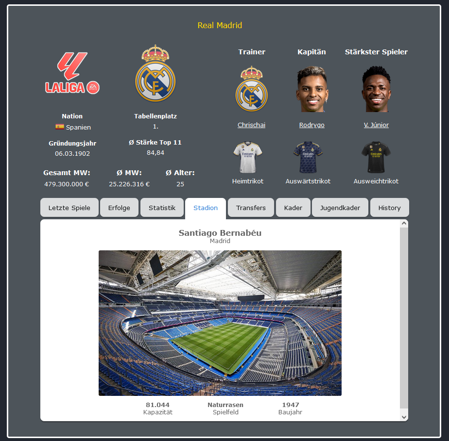 Anders als bei den meisten SIM´s ist wird aber kein blockweiser Ausbau möglich sein, sondern nur ein kompletter Neubau. Das hat den Grund, dass wir vermeiden wollen, irgendwann nur noch Stadien mit einer Kapazität von 120.000 Plätzen zu haben, das nur aus VIP-Logen besteht und zu viel Geld in die SIM spült. Unser Konzept ist ein anderes: Es ist möglich, aus zehn verschiedenen Stadien in unterschiedlicher Größe (22.000 bis 85.000 Plätze) zu wählen, die alle unterschiedlich hohe Baukosten und Bauzeiten haben. Aber Vorsicht: Ein neues Stadion bringt nicht nur Einnahmen sondern verursacht auch hohe Unterhaltskosten. Diese solltet ihr bei einem Neubau auf alle Fälle beachten.
